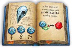 Bonus: If you place a blue chip on a ruby space, you immediately receive 1 ruby. The values of the blue chips are of no significance.