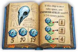 Bonus: If you draw a blue 1-chip from your bag and have to place it on a ruby space, you immediately receive 1 victory point. You receive 2 victory points for a 2-chip and 4 victory points for a 4-chip.