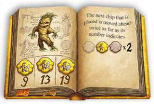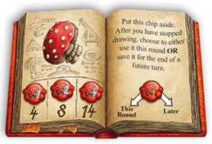 Bonus: If you draw a red chip from your bag and there are no orange chips in your pot, move the red chip forward only according to the value depicted on it. If there are already 1 or 2 orange chips in your pot, move the red chip an additional 1 space forward irrespective of its value.