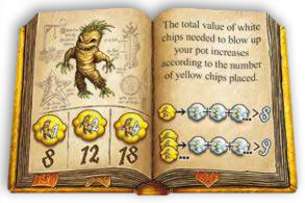 Bonus: When you draw the first yellow chip from the bag, the threshold for blowing up the pot with white chips rises from 7 to 8.