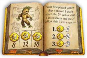 If there are 3 or more orange chips in your pot, move it an additional 2 spaces forward. It does not matter where in your pot the orange chips are.