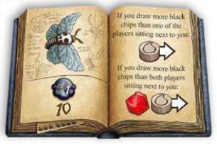 The bonuses of the following books only take effect after everyone has stopped drawing chips. These are then carried out consecutively during Evaluation Phase B.