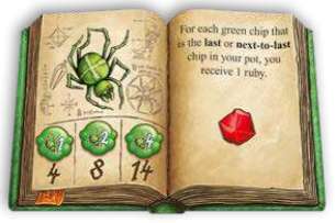 Bonus: In Evaluation Phase B, you receive 1 ruby for every green chip (irrespective of its value) that was either the last chip placed in your pot or next to last. You do not receive any rubies for any green chips that are not on your last or next to last space.