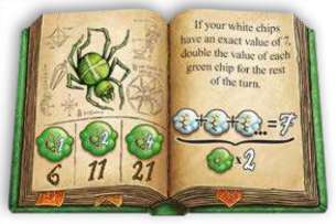 Bonus: In Evaluation Phase B, check if all the white chips in your pot amount to exactly 7. If they do, add up the value of all the green chips in your pot and then move your very last chip that many spaces forward. For example, if you have 3 green chips in your pot with a total value of 6, you can move your last chip (regardless of its color) another 6 spaces.