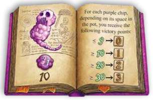 Bonus: In Evaluation Phase B, check where the purple chips are in your pot. For each purple chip in spaces 0 to 9, you receive 0 victory points. For each purple chip in spaces 10 to 19, you receive 1 victory point. For each purple chip in spaces 20 to 29, you receive 2 victory points, and for each purple chip in spaces 30 or higher, you receive 3 victory points.