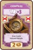 The Compass allows you to draw 3 cards, but you must remove it from the game after use.