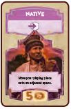 The Native knows the lay of the land and always lets you move one space when played. Ignore that space's requirements and just place your piece on it. The Native can also tear down blockades, but you can't use it to move to an occupied space or onto a mountain space.