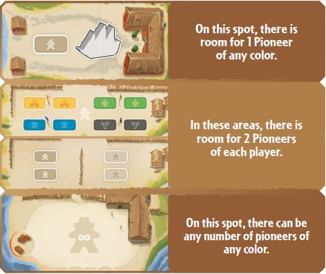 There are 3 different categories of spots on the main board where Pioneers can be placed:
