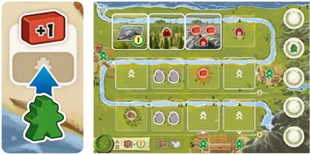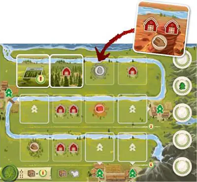 Important: On the River Boards there are 4 special framed Terrain Spots. If you have covered any of these spots during the previous round one of your Pioneers decides to settle here.