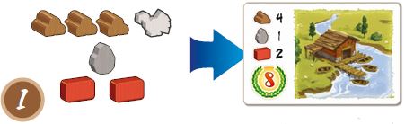In order to construct a building, pay the Resources depicted on the Building card by returning them to their respective islands. Do not forget that Food is a Wild resource. It can be used instead of any other type.
