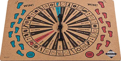 Count how many players on each team and spin the arrow the same number of times to select the objects - this creates your sock race list.