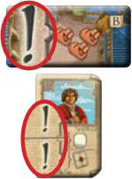 All small cities (with a ! symbol) award bonuses. Each player receives bonuses from each small city in which he or she has a trading post, see supplement.