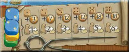 Hint: Stack dice on this action. This will allow you to quickly see who is the last player to have played on this action; it will be the one on top of the "Travel" action.