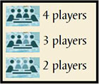 The last player in turn order (the player to the right of the start player) chooses a character first, placing it in front of him or herself. The players then continue by each taking one character card in reverse turn order. Return the remaining character to the box. The individual characters are summarized on the supplement.