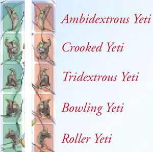 Tip: Each player should sort the Yetis in his hand as they are presented on the board. Thus, the Ambidextrous Yeti is on the far left and the Roller Yeti on the far right.
