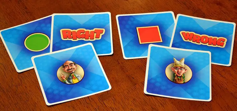If the player who answered first gave a CORRECT answer (wrong or right, depending on the back of the top card of the deck), he earns 1 point.