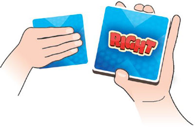 If the card shows RIGHT, the expert, or a green circle, the players must give a RIGHT answer to the question, i.e. answer the question correctly, in order to be considered CORRECT.