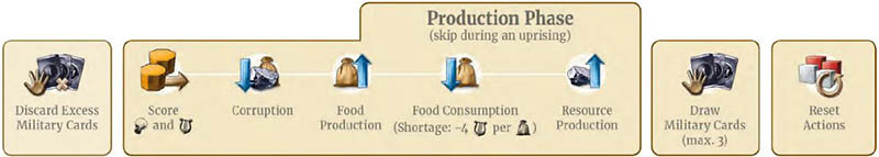 There is no risk of an uprising yet, so you will perform the steps of your Production Phase.