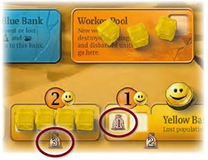 You have moved the rightmost yellow token from your yellow bank to your worker pool. Now, the token represents an unused worker. However, you have one less token in your yellow bank. That means the population density of your civilization is a bit higher.
