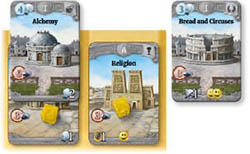 Put the rest of the Age A civil deck in the box. Shuffle the Age I civil deck and place it on the lighter half of the current age board. From now on, the card row will be replenished with Age I civil cards.