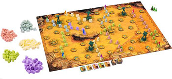 As the game progresses, you extend your caravans by placing camels of matching colors, working toward discovering watering holes, linking oases, and enclosing areas in order to score points.