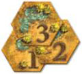 The two and three-player games use a smaller portion of the board, marked by the elevation line. In those games, all the spaces to the right and below this line are not used.