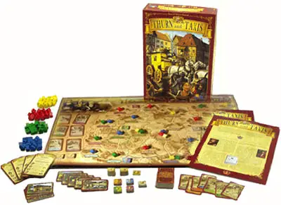 Each player builds a postal system. To do so, each player tries to build an effective network of post offices in the cities on the board, acquire valuable carriages, and collect bonus tiles. It also helps to get help from the postal officials.