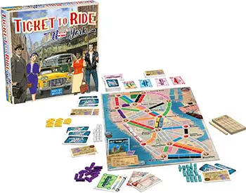 Place the board map in the center of the table. Each player takes a set of colored plastic Taxis.