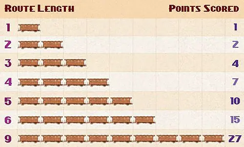 When a player claims a route, he records the points he receives by moving his Scoring Marker on the Scoring Track. See Route Table below.