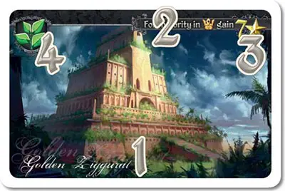 Every card has a name 1 and an ability 2. In most cases the ability is a scoring objective which provides a certain number of VPs 3.