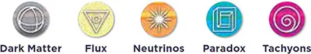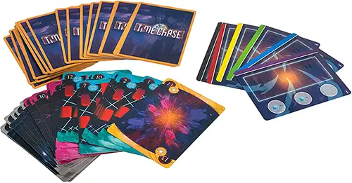 The various cards in the element deck are divided into five suits. Each suit represents an important element in the discovery of time travel.