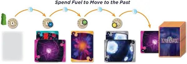 Players may - but are not required to - spend fuel in order to move their travelers backward in the timeline, so that they can attempt to change the outcome of previous events.