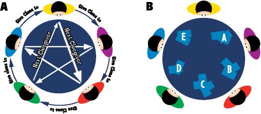 When playing in large groups, try breaking into 2 or 3 equal teams of 3 or 4 players each. Sit so that each person is between players of the other team(s).