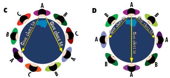 This way when the deck reaches the person to your right, you will be their Guesser. (See Diagram A)