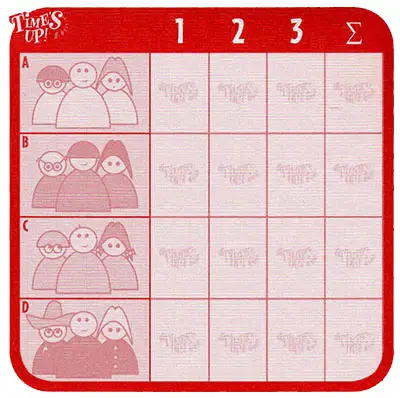 Divide into teams with team members sitting across from each other. Time's Up! works best when played in teams of two players each. (Three teams of two, for example, is better than two teams of three). With more than ten players, larger teams will be necessary. Choose a player to keep score.