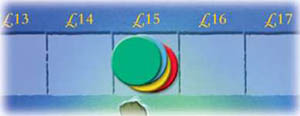 Two of your Player tokens are used to record your money on the Money Track. Each player starts the game with £15. Place one player token in the £15 space and the other in the £00 space.