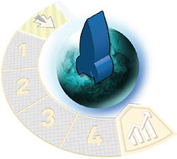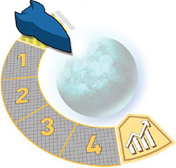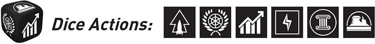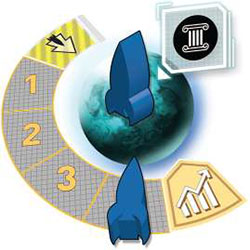 The symbol at the end of the track determines which action will allow you to advance the ship further along the track: Diplomacy or Economy. The first player to reach the end of the track will colonize the planet.