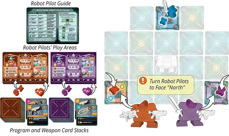 Shuffle the Robot Pilots' 8 Program Cards, placing them in a face-down stack under the Player Cards. Return each Robot Pilots' Ad Hoc Mode Card to the box.