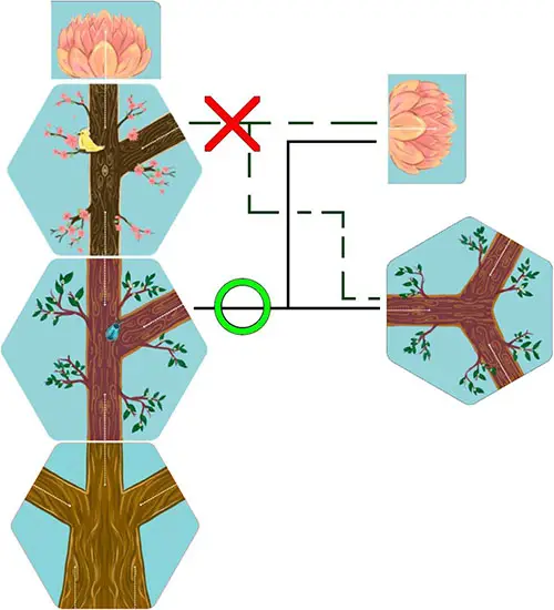 Example: Sam cannot grow anything to the top Branchlet since it has a Flower. However, anything can still be grown to the bottom Branchlet since it does not have a Flower.