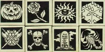 TITAN includes cardboard playing pieces, divided into character "counters", damage chits, and Legion Markers. Legion Markers are identified by a unique pictogram.