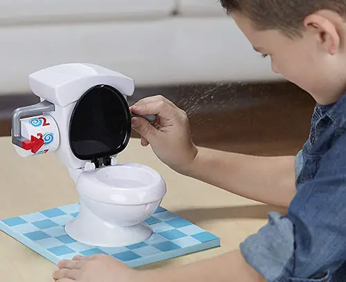 If you only hear a flushing sound but no water is sprayed when you flush, you are safe, and it's the next player's turn. If you get sprayed by the gush of water, you're out!