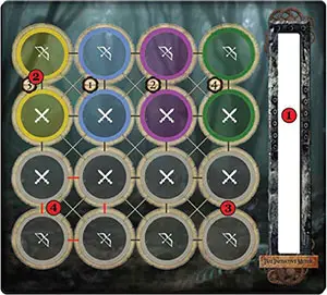 In battle, a single turn from each Baddie and Gearloc makes up 1 full round. The Ini Meter tracks the current round and whose turn it is. It also gives you a visual forecast of who will be attacking next and in what order. Initiative is built downward on the meter from highest (going first) to lowest (going last).