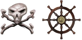 Only the bottom section of the Vote card matters in a Mutiny and contains either a Skull or a Helm. If a majority of the revealed cards have a Skull, then the captain on the mutinying ship is marooned to Tortuga. If a majority have a Helm or there is a tie, nothing happens.