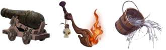 Only the top section of the Vote card matters in an Attack and contains a Cannon, a Torch, or Water. Every 1 Water cancels out 1 Torch. If there is at least 1 Cannon, and at least 1 "successful" Torch played in the Vote, the Captain may take 1 piece of treasure from the Spanish Galleon and place it in either hold on his ship.