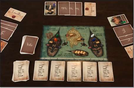 During the game you will use Vote cards to participate in Attacks to get treasure from the Spanish Galleon, in Mutinies to maroon selfish captains, and in Brawls to control the two pieces of treasure on Tortuga.