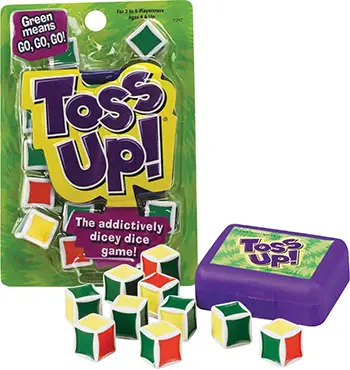 On your turn, toss all 10 Dice into the Twist & Tumble Dice Cup. Twist the top of the cup clockwise and watch the Dice tumble out! You may also use The Twist & Tumble as a traditional dice cup, if you choose.