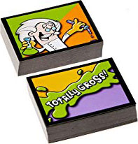 The game has two card decks. Unwrap both decks and put all of the Professor Cards together. Separate the Totally Gross Cards from the Lab Cards. This will create three different stacks of cards.
