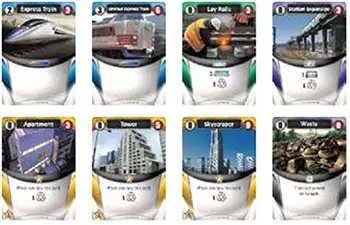4. Create the common Supply of cards. Place the cards Express Train, Limited Express Train, Lay Rails, Station Expansion, Apartment, Tower, Skyscraper, and Waste in stacks on the table. You will use these cards in every game you play.