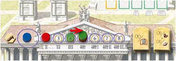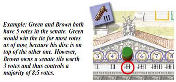 Ties are broken in favor of the player with the higher position on the senate track, in case of the same position in favor of that player whose disc is higher up in the stack.