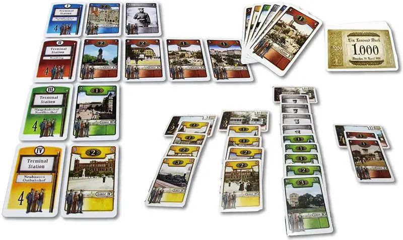 The player who most recently used a tram becomes the start player. As such, draw 12 cards from the draw pile and place them as your money pile in front of you, without looking at the front sides of the cards.